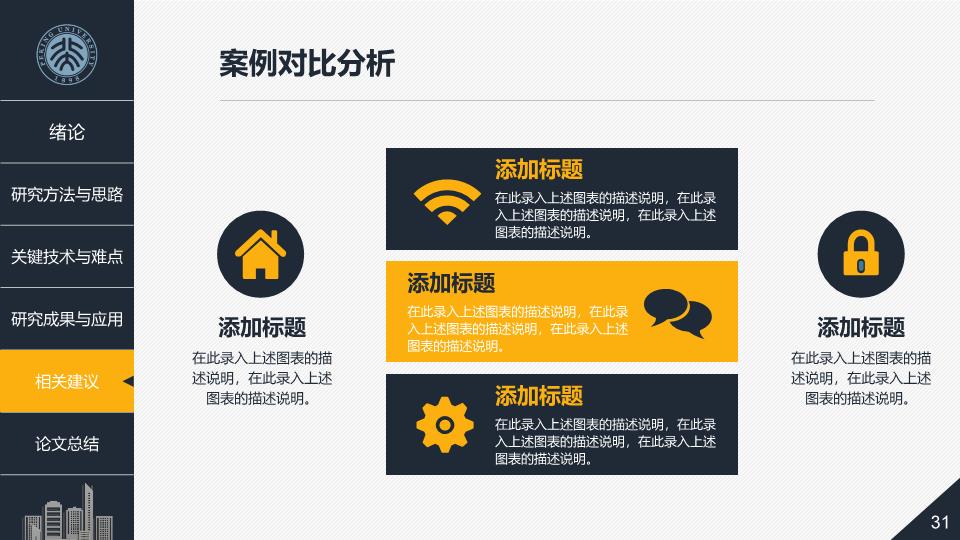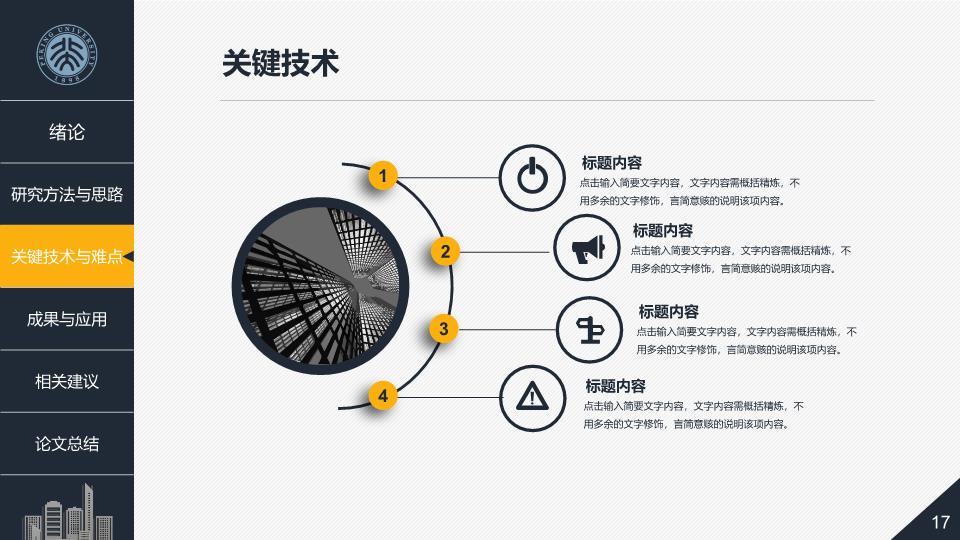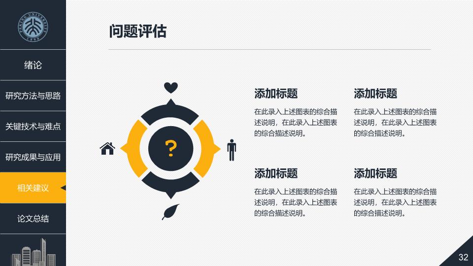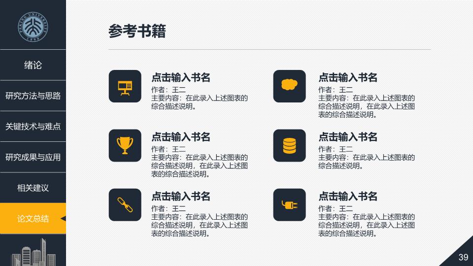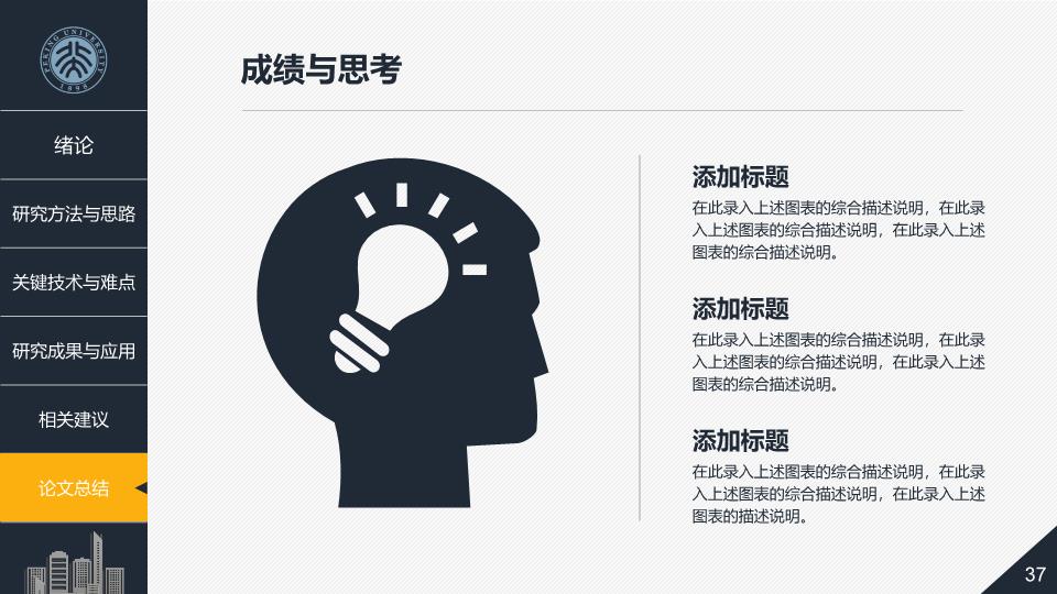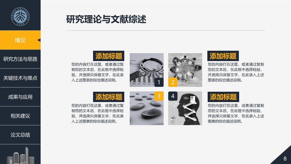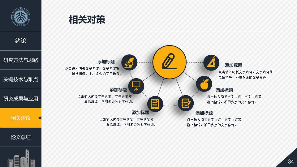 模板简介:该模板名称为【毕业论文答辩教育课件PPT模板整套素材免费下载】,大小是14.24 MB,文档格式为.PPTX,推荐使用Microsoft PPT/WPS打开,作品中的图片,文字等数据均可修改,图片请在作品中选中图片替换即可,文字修改直接点击文字修改即可,您也可以新增或修改作品中的内容,该模板来自用户分享,如有侵权行为请联系网站客服处理。欢迎来懒人模板【教育课件】栏目查找您需要的精美模板。