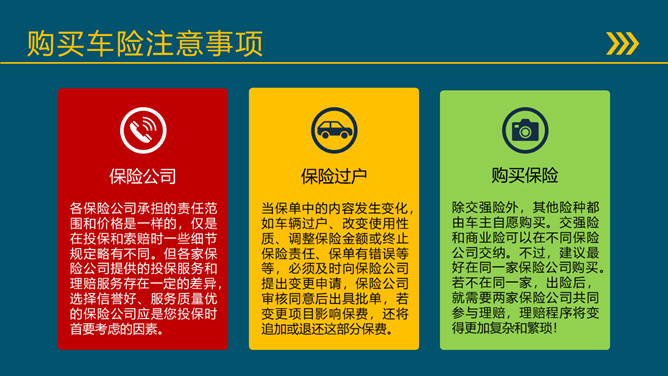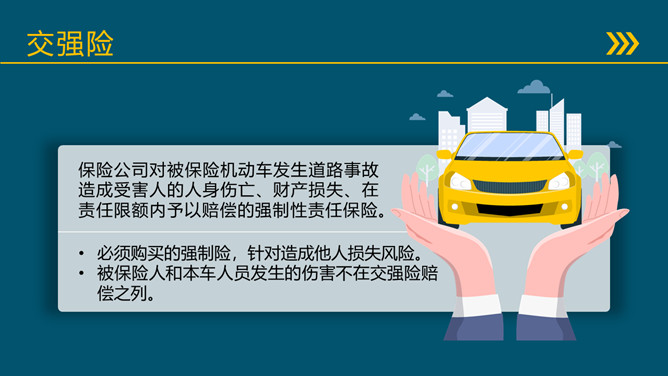 模板简介:该模板名称为【汽车保险基础知识培训PPT模板PPT模板整套素材免费下载】,大小是663KB,文档格式为.PPTX,推荐使用Microsoft PPT/WPS打开,作品中的图片,文字等数据均可修改,图片请在作品中选中图片替换即可,文字修改直接点击文字修改即可,您也可以新增或修改作品中的内容,该模板来自用户分享,如有侵权行为请联系网站客服处理。欢迎来懒人模板【教育课件】栏目查找您需要的精美模板。