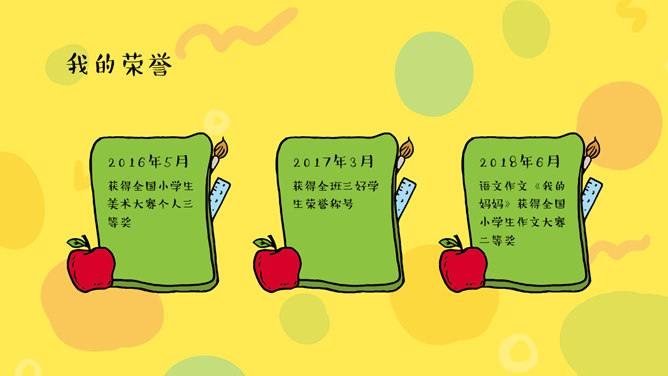 模板简介:该模板名称为【小学生班干部竞选自我介绍PPT模板整套素材免费下载】,大小是1.95MB,文档格式为..pptx,推荐使用Microsoft PPT/WPS打开,作品中的图片,文字等数据均可修改,图片请在作品中选中图片替换即可,文字修改直接点击文字修改即可,您也可以新增或修改作品中的内容,该模板来自用户分享,如有侵权行为请联系网站客服处理。欢迎来懒人模板【教育课件】栏目查找您需要的精美模板。