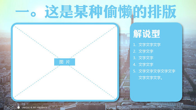 模板简介:该模板名称为【精美时尚全图界面PPT模板整套素材免费下载】,大小是1.45MB,文档格式为..pptx,推荐使用Microsoft PPT/WPS打开,作品中的图片,文字等数据均可修改,图片请在作品中选中图片替换即可,文字修改直接点击文字修改即可,您也可以新增或修改作品中的内容,该模板来自用户分享,如有侵权行为请联系网站客服处理。欢迎来懒人模板【教育课件】栏目查找您需要的精美模板。