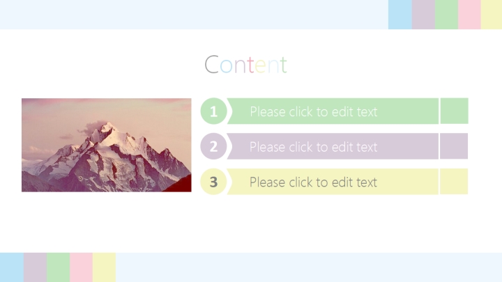 模板简介:该模板名称为【简单的七彩暖色演示PPT模板整套素材免费下载】,大小是2.4MB,文档格式为.PPT,推荐使用Microsoft PPT/WPS打开,作品中的图片,文字等数据均可修改,图片请在作品中选中图片替换即可,文字修改直接点击文字修改即可,您也可以新增或修改作品中的内容,该模板来自用户分享,如有侵权行为请联系网站客服处理。欢迎来懒人模板【教育课件】栏目查找您需要的精美模板。