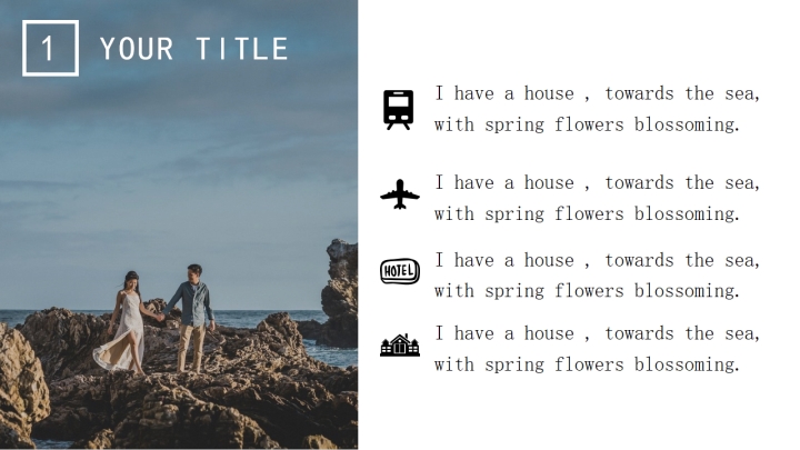 模板简介:该模板名称为【清新蓝蜜月旅行方案PPT模板整套素材免费下载】,大小是4.47MB,文档格式为.PPT,推荐使用Microsoft PPT/WPS打开,作品中的图片,文字等数据均可修改,图片请在作品中选中图片替换即可,文字修改直接点击文字修改即可,您也可以新增或修改作品中的内容,该模板来自用户分享,如有侵权行为请联系网站客服处理。欢迎来懒人模板【相册图集】栏目查找您需要的精美模板。