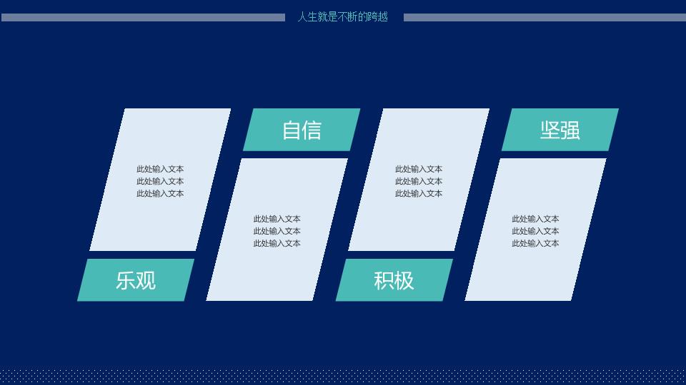模板简介:该模板名称为【蓝色个人简历述职竞聘PPT模板整套素材免费下载】,大小是6.71 MB,文档格式为.PPT,推荐使用Microsoft PPT/WPS打开,作品中的图片,文字等数据均可修改,图片请在作品中选中图片替换即可,文字修改直接点击文字修改即可,您也可以新增或修改作品中的内容,该模板来自用户分享,如有侵权行为请联系网站客服处理。欢迎来懒人模板【述职汇报】栏目查找您需要的精美模板。