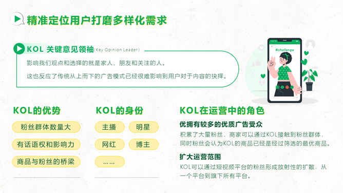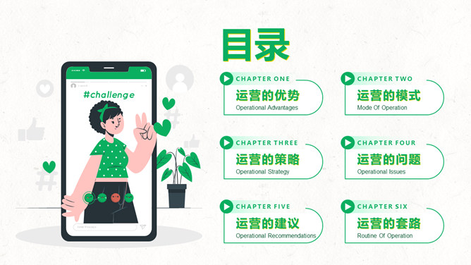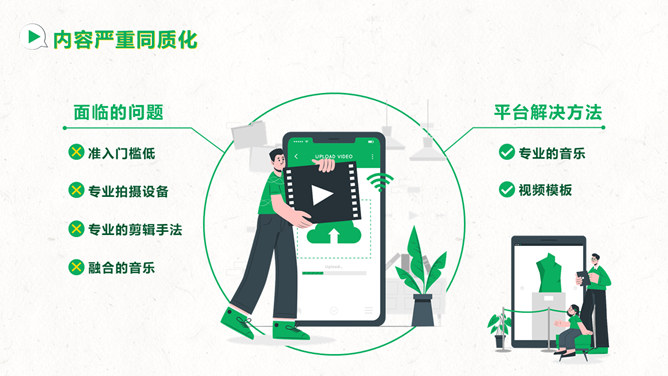 模板简介:该模板名称为【短视频自媒体运营操作指南PPT模板整套素材免费下载】,大小是3.86MB,文档格式为.PPTX,推荐使用Microsoft PPT/WPS打开,作品中的图片,文字等数据均可修改,图片请在作品中选中图片替换即可,文字修改直接点击文字修改即可,您也可以新增或修改作品中的内容,该模板来自用户分享,如有侵权行为请联系网站客服处理。欢迎来懒人模板【营销策划】栏目查找您需要的精美模板。