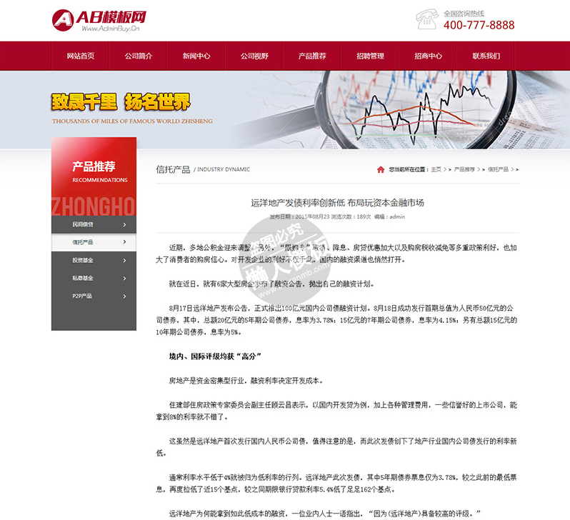 模板简介:该模板名称为【中弘投资公司网站整站带织梦后台pc网站源码下载】,大小是,文档格式为.,推荐使用打开,作品中的图片,文字等数据均可修改,图片请在作品中选中图片替换即可,文字修改直接点击文字修改即可,您也可以新增或修改作品中的内容,该模板来自用户分享,如有侵权行为请联系网站客服处理。欢迎来懒人模板【财经】栏目查找您需要的精美模板。