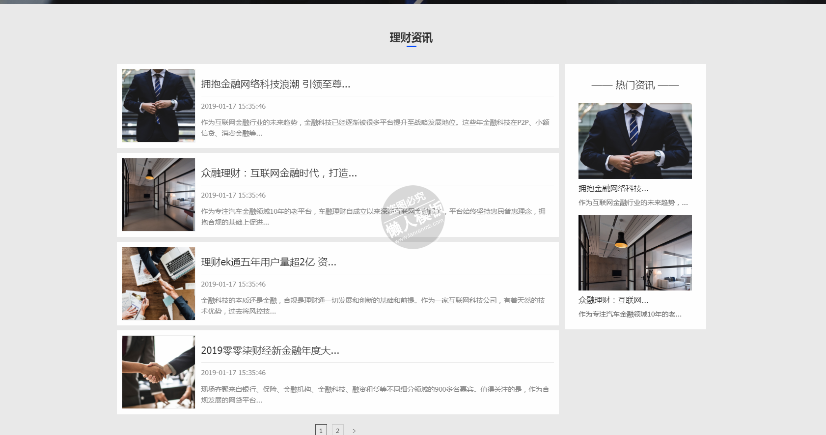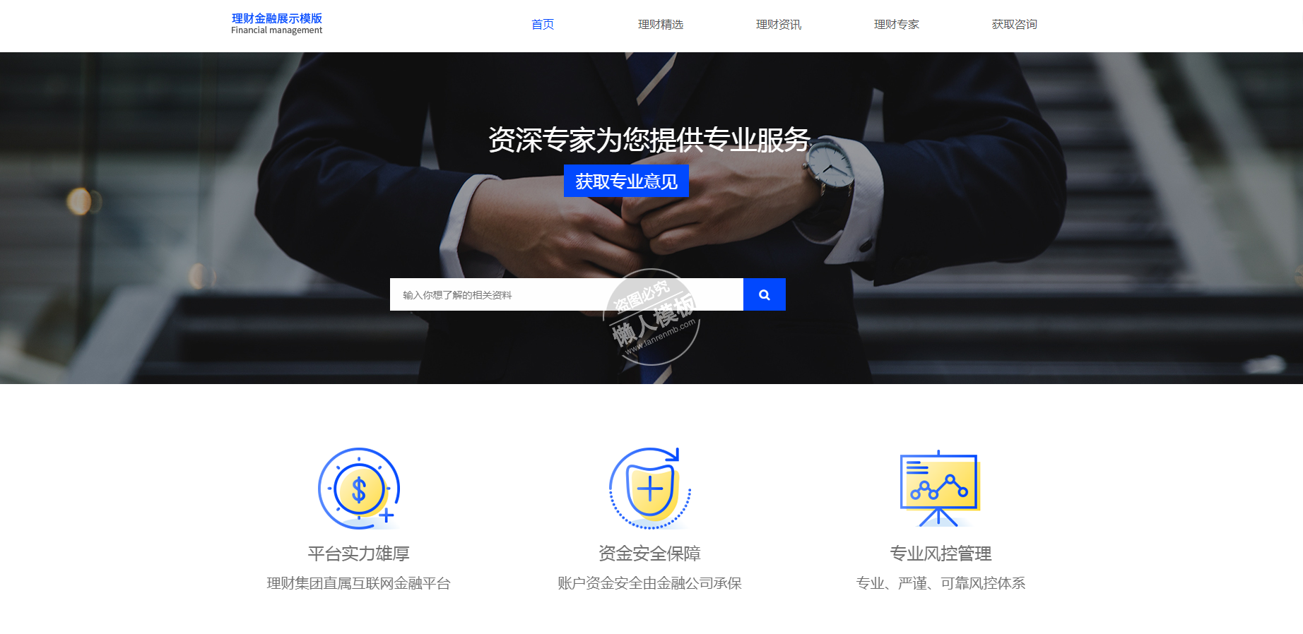 模板简介:该模板名称为【众融理财自适应响应式财经网站双模板下载】,大小是,文档格式为.,推荐使用打开,作品中的图片,文字等数据均可修改,图片请在作品中选中图片替换即可,文字修改直接点击文字修改即可,您也可以新增或修改作品中的内容,该模板来自用户分享,如有侵权行为请联系网站客服处理。欢迎来懒人模板【财经】栏目查找您需要的精美模板。
