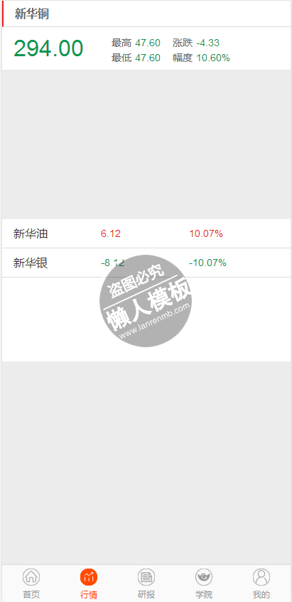 模板简介:该模板名称为【新华网股票直播页面触屏版自适应手机wap财经网站模板下载】,大小是,文档格式为.,推荐使用打开,作品中的图片,文字等数据均可修改,图片请在作品中选中图片替换即可,文字修改直接点击文字修改即可,您也可以新增或修改作品中的内容,该模板来自用户分享,如有侵权行为请联系网站客服处理。欢迎来懒人模板【财经】栏目查找您需要的精美模板。