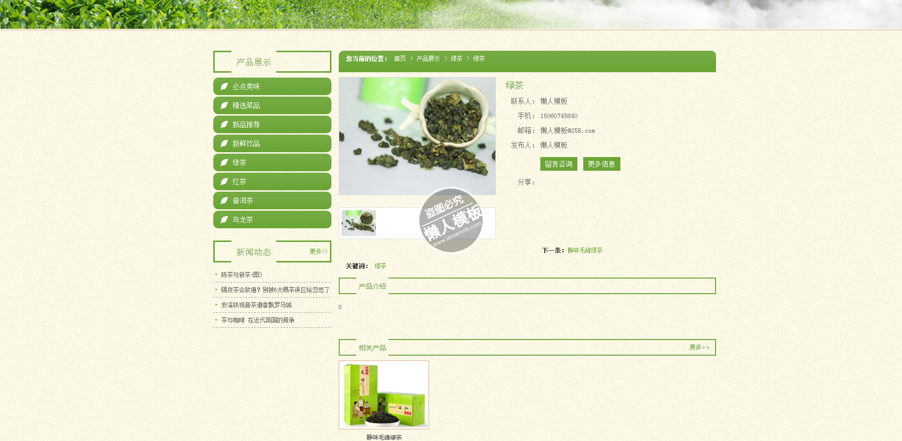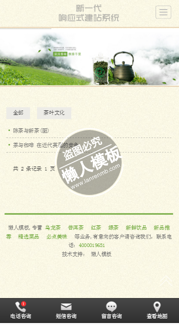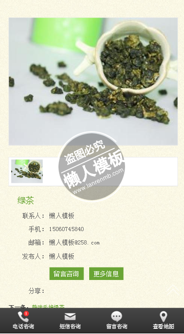 模板简介:该模板名称为【茶香四溢手机PC端自适应响应式html5茶叶网站双模板下载】,大小是,文档格式为.,推荐使用打开,作品中的图片,文字等数据均可修改,图片请在作品中选中图片替换即可,文字修改直接点击文字修改即可,您也可以新增或修改作品中的内容,该模板来自用户分享,如有侵权行为请联系网站客服处理。欢迎来懒人模板【茶叶】栏目查找您需要的精美模板。