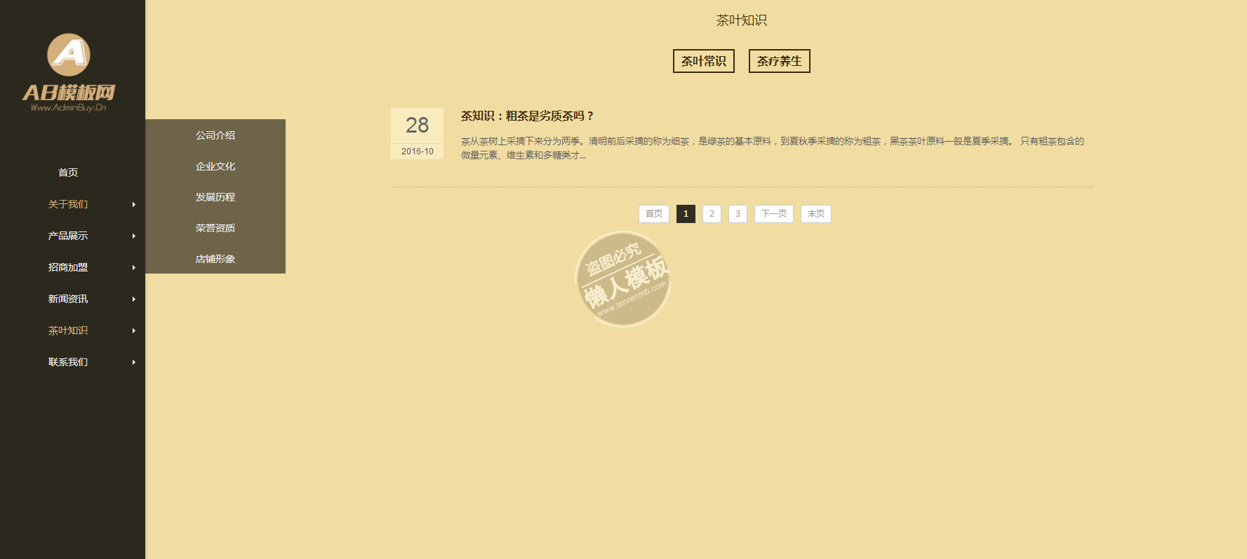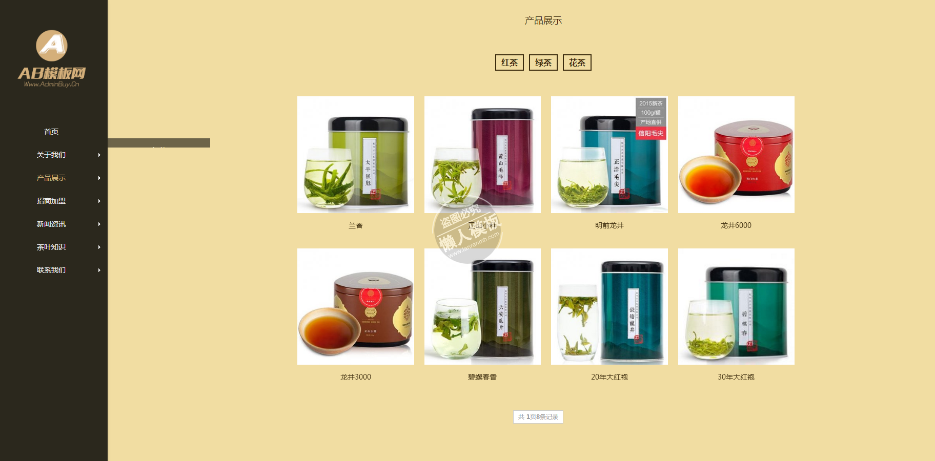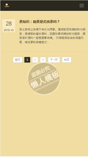 模板简介:该模板名称为【茶道文化茶叶展示网站整站带织梦后台pc手机双网站源码下载】,大小是,文档格式为.,推荐使用打开,作品中的图片,文字等数据均可修改,图片请在作品中选中图片替换即可,文字修改直接点击文字修改即可,您也可以新增或修改作品中的内容,该模板来自用户分享,如有侵权行为请联系网站客服处理。欢迎来懒人模板【茶叶】栏目查找您需要的精美模板。