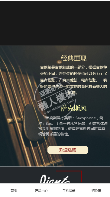 模板简介:该模板名称为【pianta乐器商城手机PC端自适应响应式html5购物网站双模板下载】,大小是,文档格式为.,推荐使用打开,作品中的图片,文字等数据均可修改,图片请在作品中选中图片替换即可,文字修改直接点击文字修改即可,您也可以新增或修改作品中的内容,该模板来自用户分享,如有侵权行为请联系网站客服处理。欢迎来懒人模板【购物】栏目查找您需要的精美模板。
