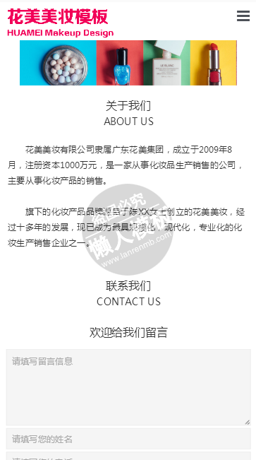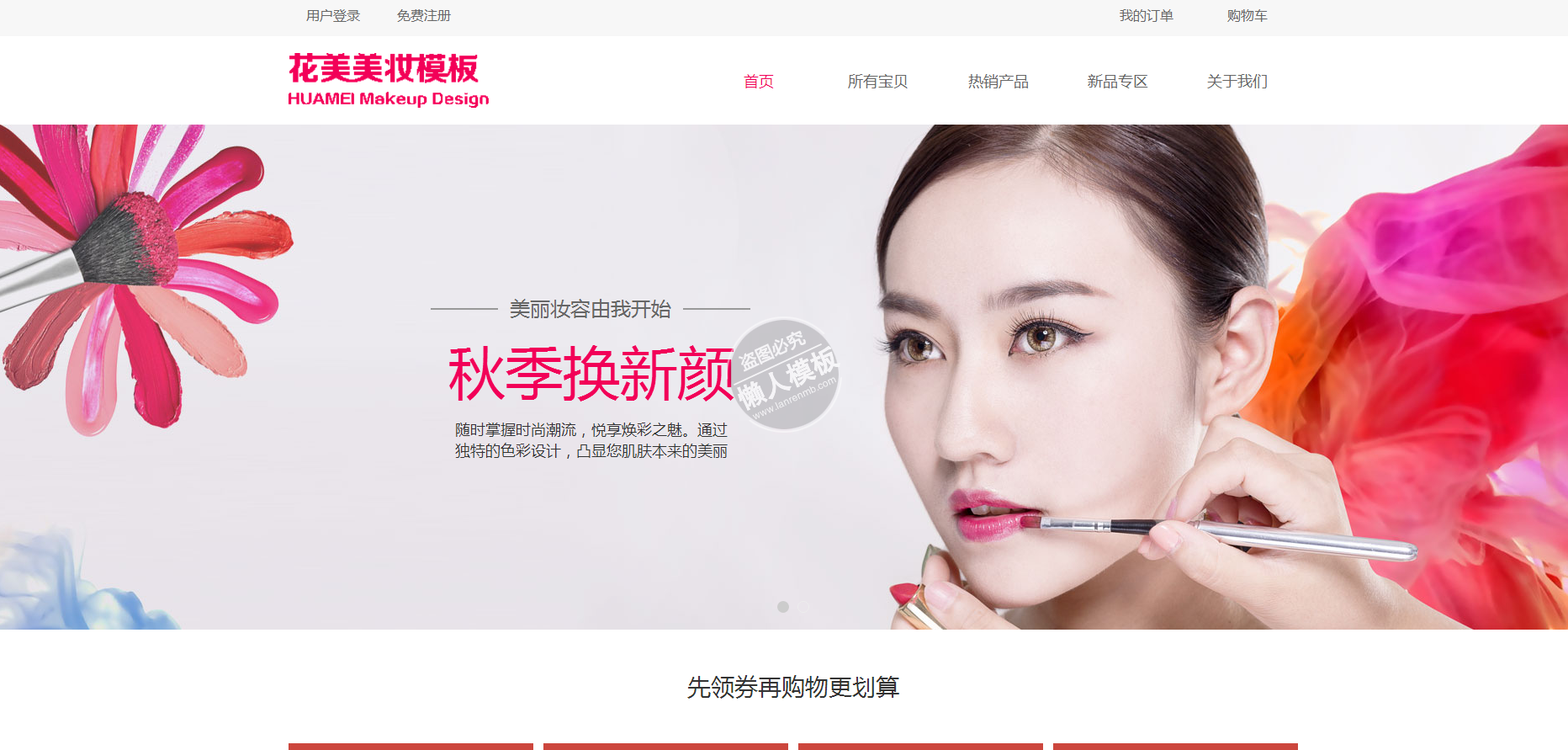 模板简介:该模板名称为【花美美妆化妆品商城手机PC端商城网站双模板下载】,大小是,文档格式为.,推荐使用打开,作品中的图片,文字等数据均可修改,图片请在作品中选中图片替换即可,文字修改直接点击文字修改即可,您也可以新增或修改作品中的内容,该模板来自用户分享,如有侵权行为请联系网站客服处理。欢迎来懒人模板【购物】栏目查找您需要的精美模板。