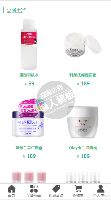 模板简介:该模板名称为【和颜化妆品商城自适应响应式化妆品商城网站双模板下载】,大小是,文档格式为.,推荐使用打开,作品中的图片,文字等数据均可修改,图片请在作品中选中图片替换即可,文字修改直接点击文字修改即可,您也可以新增或修改作品中的内容,该模板来自用户分享,如有侵权行为请联系网站客服处理。欢迎来懒人模板【购物】栏目查找您需要的精美模板。