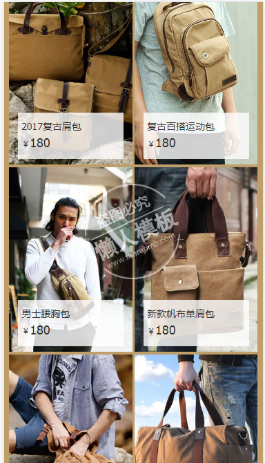模板简介:该模板名称为【BUG男士包自适应响应式购物商城网站双模板下载】,大小是,文档格式为.,推荐使用打开,作品中的图片,文字等数据均可修改,图片请在作品中选中图片替换即可,文字修改直接点击文字修改即可,您也可以新增或修改作品中的内容,该模板来自用户分享,如有侵权行为请联系网站客服处理。欢迎来懒人模板【购物】栏目查找您需要的精美模板。