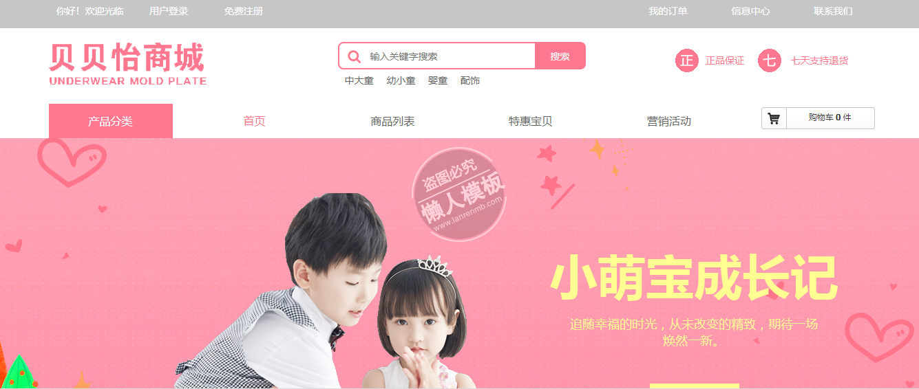 模板简介:该模板名称为【贝贝怡商城自适应响应式购物网站双模板下载】,大小是,文档格式为.,推荐使用打开,作品中的图片,文字等数据均可修改,图片请在作品中选中图片替换即可,文字修改直接点击文字修改即可,您也可以新增或修改作品中的内容,该模板来自用户分享,如有侵权行为请联系网站客服处理。欢迎来懒人模板【购物】栏目查找您需要的精美模板。