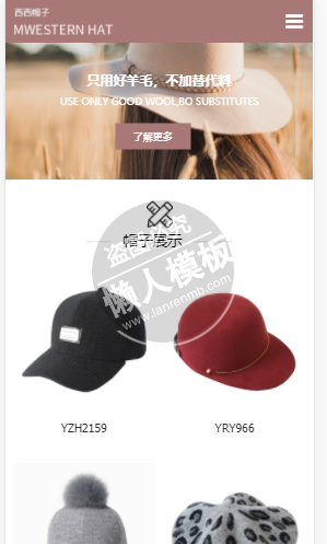 模板简介:该模板名称为【西西帽子商城自适应响应式购物网站双模板下载】,大小是,文档格式为.,推荐使用打开,作品中的图片,文字等数据均可修改,图片请在作品中选中图片替换即可,文字修改直接点击文字修改即可,您也可以新增或修改作品中的内容,该模板来自用户分享,如有侵权行为请联系网站客服处理。欢迎来懒人模板【购物】栏目查找您需要的精美模板。