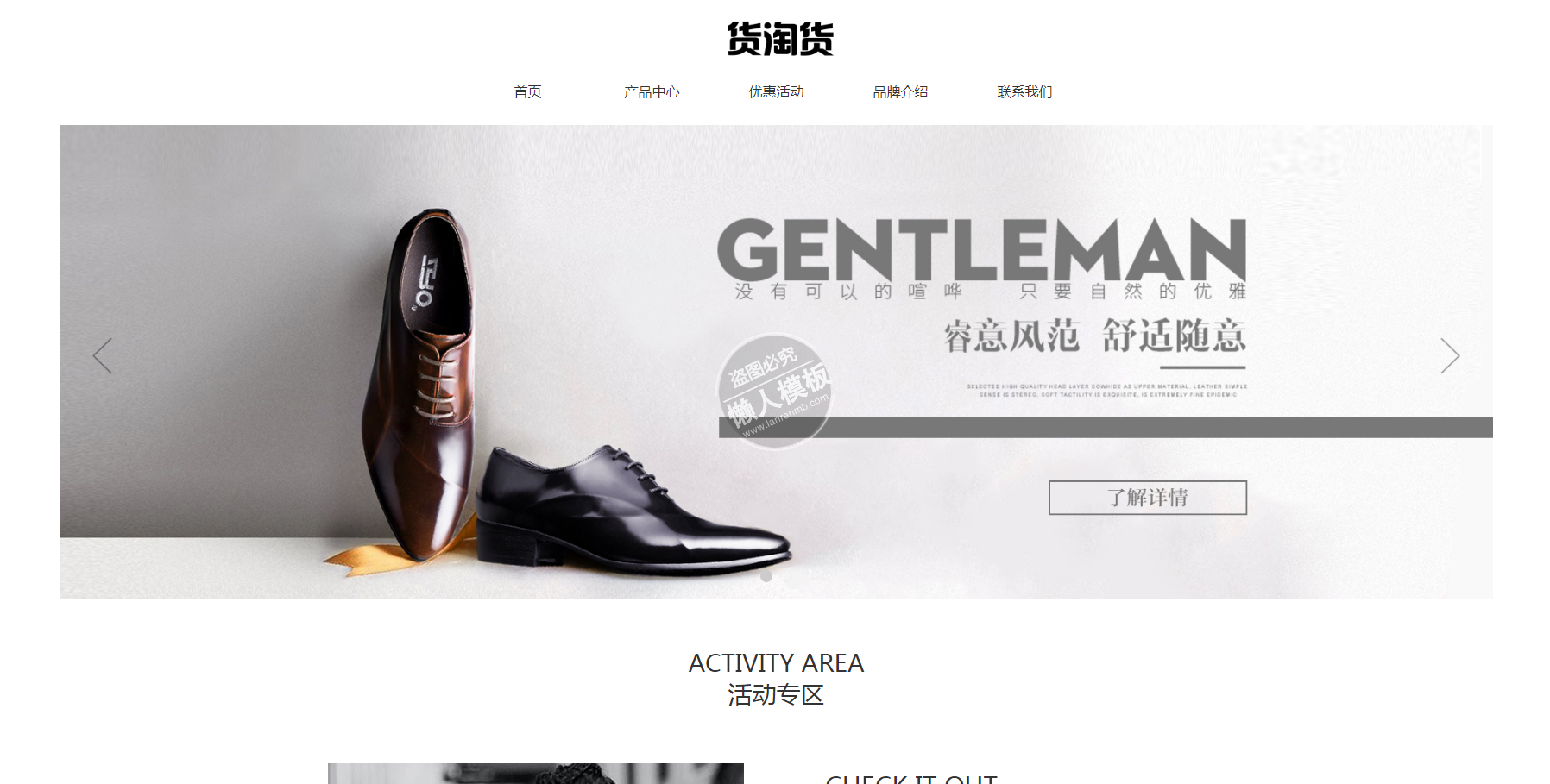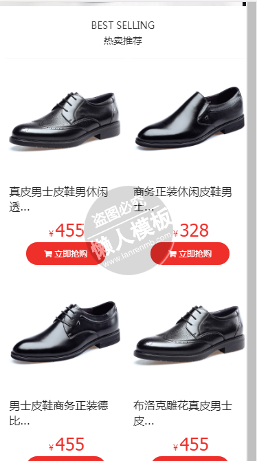 模板简介:该模板名称为【货淘货牛皮鞋男鞋商城自适应响应式男鞋网站双模板下载】,大小是,文档格式为.,推荐使用打开,作品中的图片,文字等数据均可修改,图片请在作品中选中图片替换即可,文字修改直接点击文字修改即可,您也可以新增或修改作品中的内容,该模板来自用户分享,如有侵权行为请联系网站客服处理。欢迎来懒人模板【购物】栏目查找您需要的精美模板。