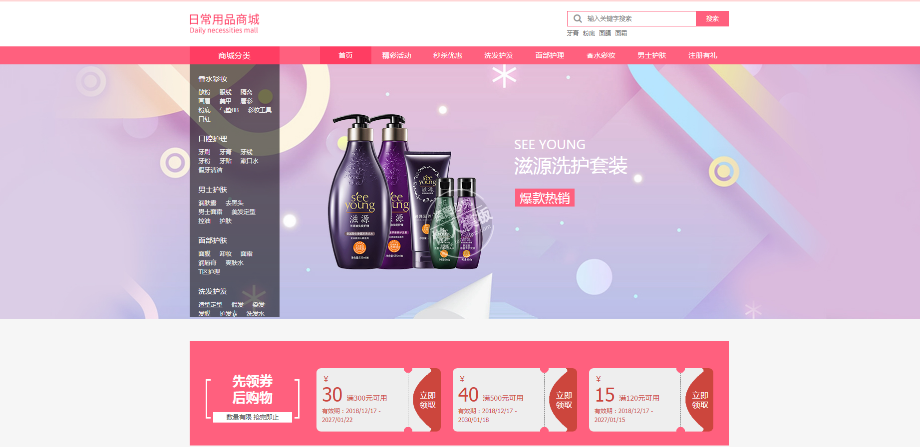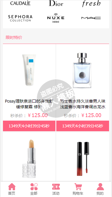 模板简介:该模板名称为【霞飞日化日用品商城自适应响应式购物网站双模板下载】,大小是,文档格式为.,推荐使用打开,作品中的图片,文字等数据均可修改,图片请在作品中选中图片替换即可,文字修改直接点击文字修改即可,您也可以新增或修改作品中的内容,该模板来自用户分享,如有侵权行为请联系网站客服处理。欢迎来懒人模板【购物】栏目查找您需要的精美模板。