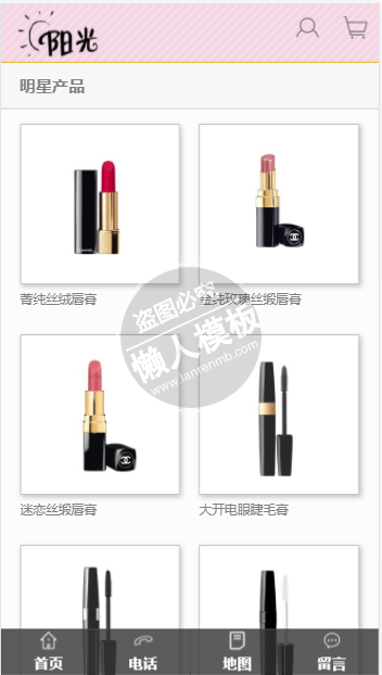 模板简介:该模板名称为【阳光化妆品商城网站模板免费下载】,大小是,文档格式为.,推荐使用打开,作品中的图片,文字等数据均可修改,图片请在作品中选中图片替换即可,文字修改直接点击文字修改即可,您也可以新增或修改作品中的内容,该模板来自用户分享,如有侵权行为请联系网站客服处理。欢迎来懒人模板【购物】栏目查找您需要的精美模板。