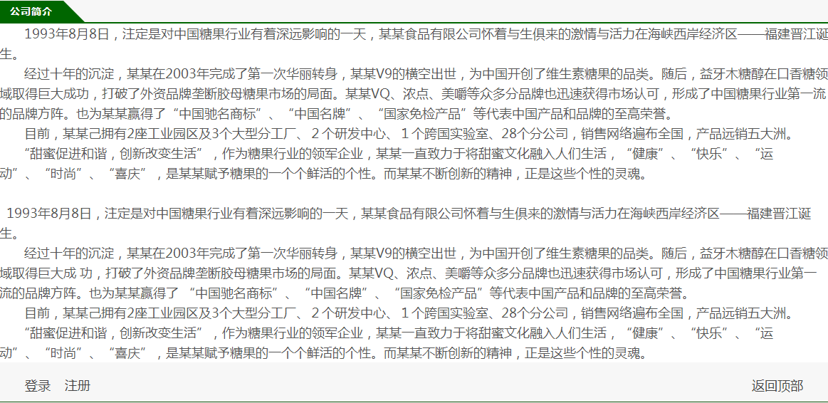模板简介:该模板名称为【糖果公司自适应响应式网站模板素材免费下载】,大小是,文档格式为.,推荐使用打开,作品中的图片,文字等数据均可修改,图片请在作品中选中图片替换即可,文字修改直接点击文字修改即可,您也可以新增或修改作品中的内容,该模板来自用户分享,如有侵权行为请联系网站客服处理。欢迎来懒人模板【购物】栏目查找您需要的精美模板。