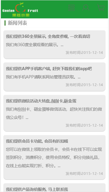 模板简介:该模板名称为【GOOlan水果自适应响应式网站模板免费下载】,大小是,文档格式为.,推荐使用打开,作品中的图片,文字等数据均可修改,图片请在作品中选中图片替换即可,文字修改直接点击文字修改即可,您也可以新增或修改作品中的内容,该模板来自用户分享,如有侵权行为请联系网站客服处理。欢迎来懒人模板【购物】栏目查找您需要的精美模板。