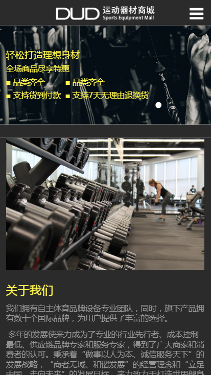 模板简介:该模板名称为【DUD运动器材商城自适应响应式购物网站模板免费下载】,大小是,文档格式为.,推荐使用打开,作品中的图片,文字等数据均可修改,图片请在作品中选中图片替换即可,文字修改直接点击文字修改即可,您也可以新增或修改作品中的内容,该模板来自用户分享,如有侵权行为请联系网站客服处理。欢迎来懒人模板【购物】栏目查找您需要的精美模板。