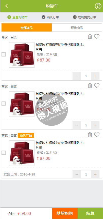 模板简介:该模板名称为【热门商品商城购触屏版html5手机wap商城购物网站模板下载】,大小是,文档格式为.,推荐使用打开,作品中的图片,文字等数据均可修改,图片请在作品中选中图片替换即可,文字修改直接点击文字修改即可,您也可以新增或修改作品中的内容,该模板来自用户分享,如有侵权行为请联系网站客服处理。欢迎来懒人模板【购物】栏目查找您需要的精美模板。
