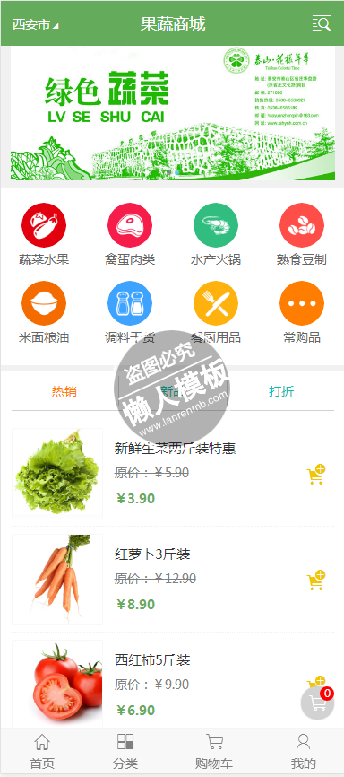模板简介:该模板名称为【果蔬在线商城首页单页html5手机专题单页网站模板源码下载】,大小是,文档格式为.,推荐使用打开,作品中的图片,文字等数据均可修改,图片请在作品中选中图片替换即可,文字修改直接点击文字修改即可,您也可以新增或修改作品中的内容,该模板来自用户分享,如有侵权行为请联系网站客服处理。欢迎来懒人模板【购物】栏目查找您需要的精美模板。