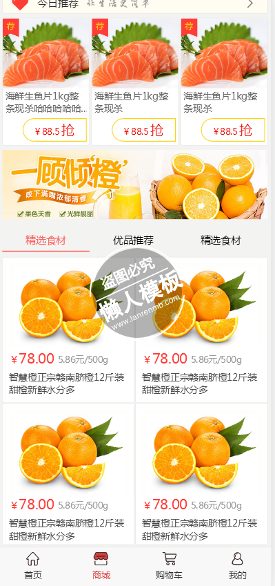 模板简介:该模板名称为【网上美食购物商城首页单页html5手机专题单页网站模板源码下载】,大小是,文档格式为.,推荐使用打开,作品中的图片,文字等数据均可修改,图片请在作品中选中图片替换即可,文字修改直接点击文字修改即可,您也可以新增或修改作品中的内容,该模板来自用户分享,如有侵权行为请联系网站客服处理。欢迎来懒人模板【购物】栏目查找您需要的精美模板。
