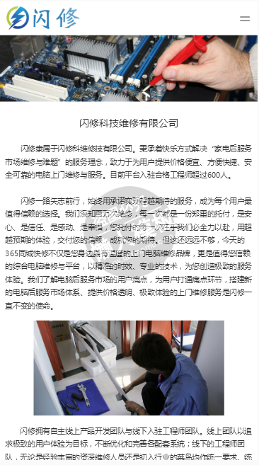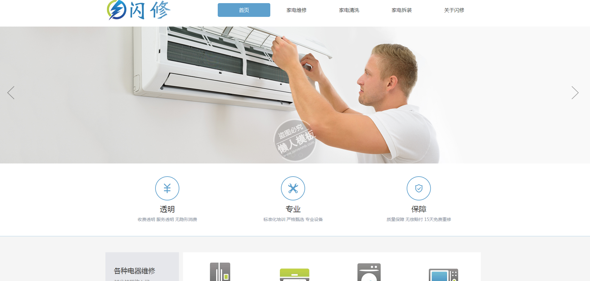 模板简介:该模板名称为【闪修家电网手机PC端自适应响应式html5家电网站双模板下载】,大小是,文档格式为.,推荐使用打开,作品中的图片,文字等数据均可修改,图片请在作品中选中图片替换即可,文字修改直接点击文字修改即可,您也可以新增或修改作品中的内容,该模板来自用户分享,如有侵权行为请联系网站客服处理。欢迎来懒人模板【家电】栏目查找您需要的精美模板。