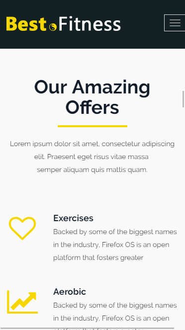 模板简介:该模板名称为【黄色主题健身会所触屏版自适应手机wap网站模板源码下载】,大小是,文档格式为.,推荐使用打开,作品中的图片,文字等数据均可修改,图片请在作品中选中图片替换即可,文字修改直接点击文字修改即可,您也可以新增或修改作品中的内容,该模板来自用户分享,如有侵权行为请联系网站客服处理。欢迎来懒人模板【健康】栏目查找您需要的精美模板。