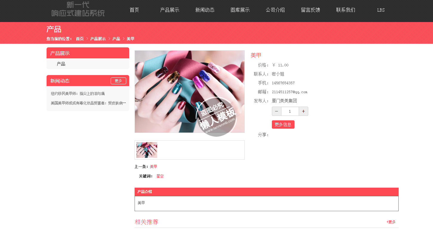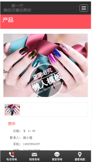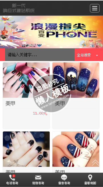 模板简介:该模板名称为【浪漫指尖专业美甲手机PC端自适应响应式html5女性网站双模板下载】,大小是,文档格式为.,推荐使用打开,作品中的图片,文字等数据均可修改,图片请在作品中选中图片替换即可,文字修改直接点击文字修改即可,您也可以新增或修改作品中的内容,该模板来自用户分享,如有侵权行为请联系网站客服处理。欢迎来懒人模板【女性】栏目查找您需要的精美模板。