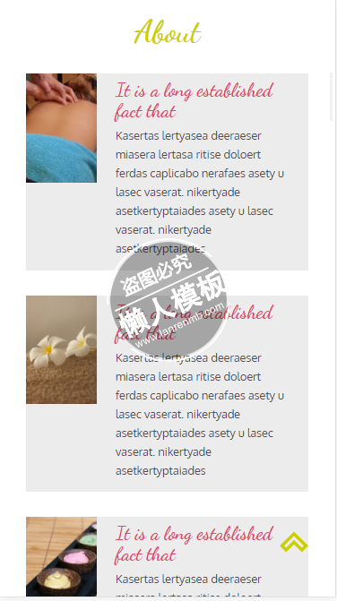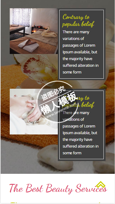 模板简介:该模板名称为【Ecospa美丽spa html5手机wap美容美发女性网站模板免费下载】,大小是,文档格式为.,推荐使用打开,作品中的图片,文字等数据均可修改,图片请在作品中选中图片替换即可,文字修改直接点击文字修改即可,您也可以新增或修改作品中的内容,该模板来自用户分享,如有侵权行为请联系网站客服处理。欢迎来懒人模板【女性】栏目查找您需要的精美模板。