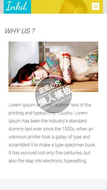 模板简介:该模板名称为【Inkd漂亮女性纹身html5美容美发女性手机wap网站模板免费下载】,大小是,文档格式为.,推荐使用打开,作品中的图片,文字等数据均可修改,图片请在作品中选中图片替换即可,文字修改直接点击文字修改即可,您也可以新增或修改作品中的内容,该模板来自用户分享,如有侵权行为请联系网站客服处理。欢迎来懒人模板【女性】栏目查找您需要的精美模板。