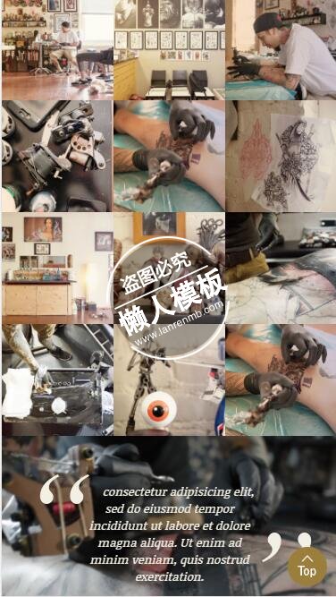 模板简介:该模板名称为【Inktatto专业手臂纹身html5艺术手机wap网站模板免费下载】,大小是,文档格式为.,推荐使用打开,作品中的图片,文字等数据均可修改,图片请在作品中选中图片替换即可,文字修改直接点击文字修改即可,您也可以新增或修改作品中的内容,该模板来自用户分享,如有侵权行为请联系网站客服处理。欢迎来懒人模板【女性】栏目查找您需要的精美模板。