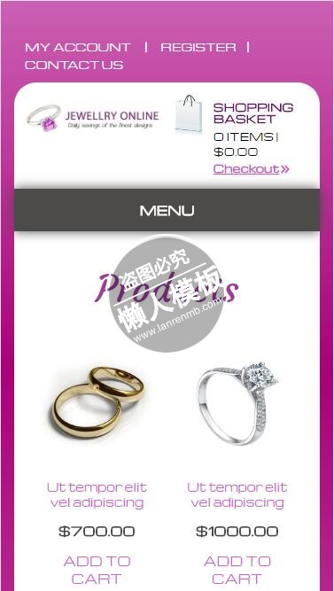 模板简介:该模板名称为【Jewellry结婚钻戒html5手机wap时尚女性网站模板免费下载】,大小是,文档格式为.,推荐使用打开,作品中的图片,文字等数据均可修改,图片请在作品中选中图片替换即可,文字修改直接点击文字修改即可,您也可以新增或修改作品中的内容,该模板来自用户分享,如有侵权行为请联系网站客服处理。欢迎来懒人模板【女性】栏目查找您需要的精美模板。
