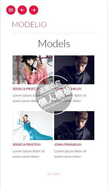 模板简介:该模板名称为【Modelio红色风格个人站html5手机wap时尚女性网站模板免费下载】,大小是,文档格式为.,推荐使用打开,作品中的图片,文字等数据均可修改,图片请在作品中选中图片替换即可,文字修改直接点击文字修改即可,您也可以新增或修改作品中的内容,该模板来自用户分享,如有侵权行为请联系网站客服处理。欢迎来懒人模板【女性】栏目查找您需要的精美模板。