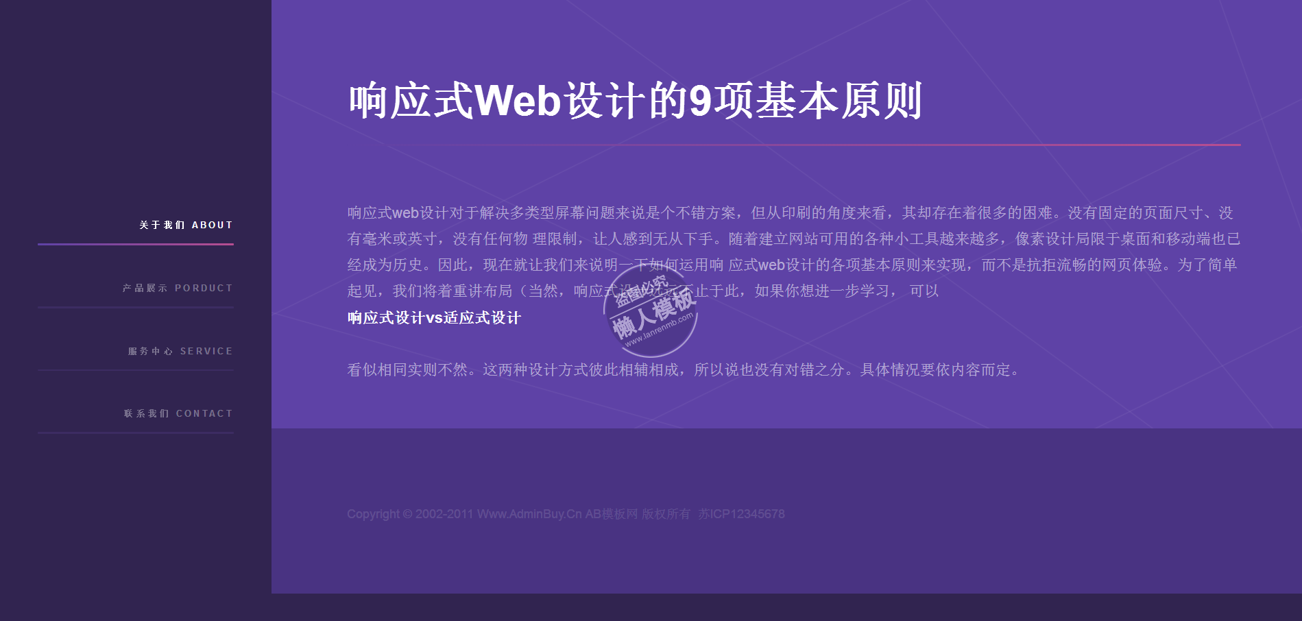 模板简介:该模板名称为【优雅紫色炫彩侧边企业网站整站带织梦后台pc手机双网站源码下载】,大小是,文档格式为.,推荐使用打开,作品中的图片,文字等数据均可修改,图片请在作品中选中图片替换即可,文字修改直接点击文字修改即可,您也可以新增或修改作品中的内容,该模板来自用户分享,如有侵权行为请联系网站客服处理。欢迎来懒人模板【企业】栏目查找您需要的精美模板。