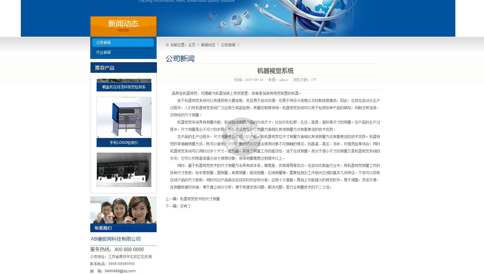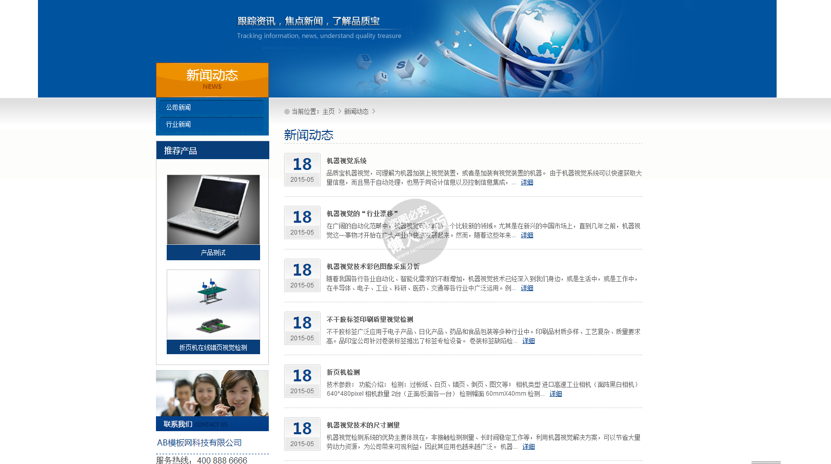 模板简介:该模板名称为【品质宝机器视觉电子设备企业网站整站带织梦后台pc网站源码下载】,大小是,文档格式为.,推荐使用打开,作品中的图片,文字等数据均可修改,图片请在作品中选中图片替换即可,文字修改直接点击文字修改即可,您也可以新增或修改作品中的内容,该模板来自用户分享,如有侵权行为请联系网站客服处理。欢迎来懒人模板【企业】栏目查找您需要的精美模板。