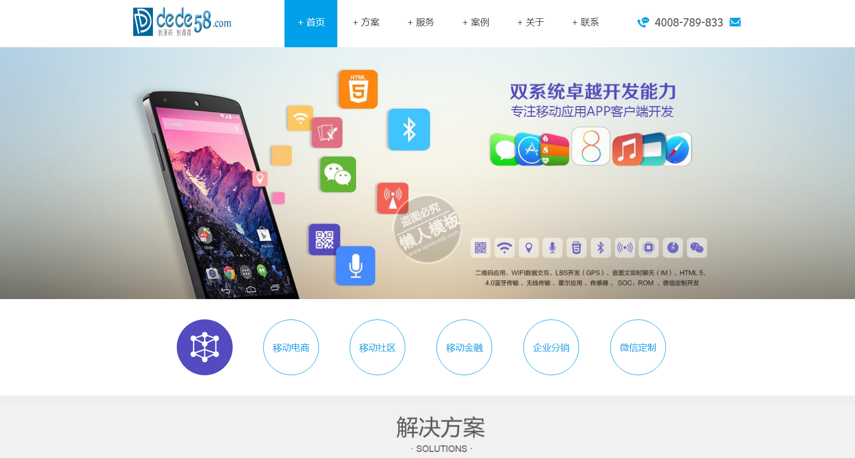模板简介:该模板名称为【简洁手机软件开发企业整站带织梦后台pc手机双网站源码下载】,大小是,文档格式为.,推荐使用打开,作品中的图片,文字等数据均可修改,图片请在作品中选中图片替换即可,文字修改直接点击文字修改即可,您也可以新增或修改作品中的内容,该模板来自用户分享,如有侵权行为请联系网站客服处理。欢迎来懒人模板【企业】栏目查找您需要的精美模板。