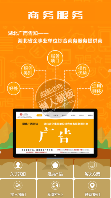 模板简介:该模板名称为【黄色界面通用企业网站整站带织梦后台手机网站源码下载】,大小是,文档格式为.,推荐使用打开,作品中的图片,文字等数据均可修改,图片请在作品中选中图片替换即可,文字修改直接点击文字修改即可,您也可以新增或修改作品中的内容,该模板来自用户分享,如有侵权行为请联系网站客服处理。欢迎来懒人模板【企业】栏目查找您需要的精美模板。
