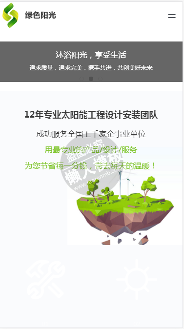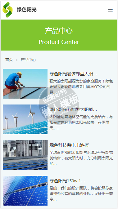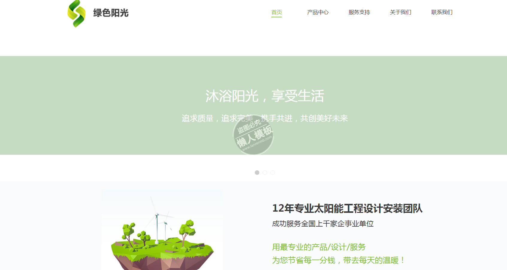 模板简介:该模板名称为【绿色阳光太阳能有限公司自适应响应式企业网站双模板下载】,大小是,文档格式为.,推荐使用打开,作品中的图片,文字等数据均可修改,图片请在作品中选中图片替换即可,文字修改直接点击文字修改即可,您也可以新增或修改作品中的内容,该模板来自用户分享,如有侵权行为请联系网站客服处理。欢迎来懒人模板【企业】栏目查找您需要的精美模板。