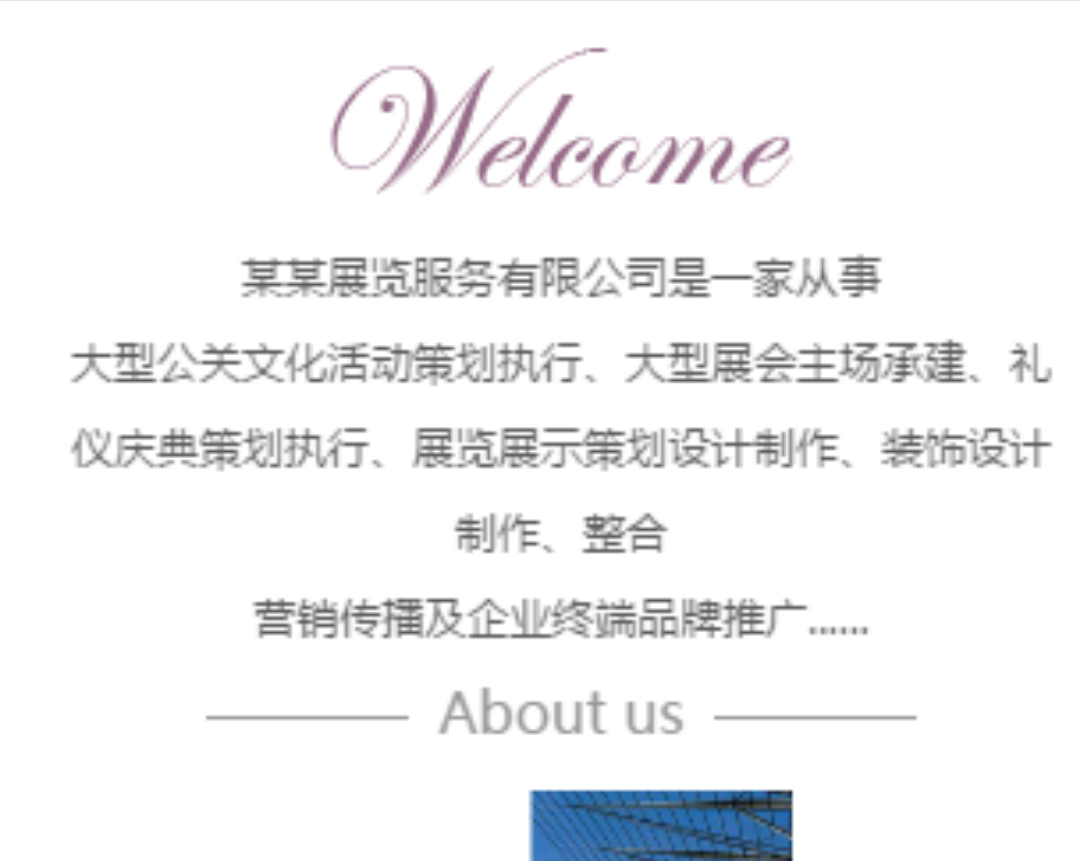 模板简介:该模板名称为【北京天空猎展览服务有限公司网站模板素材免费下载】,大小是,文档格式为.,推荐使用打开,作品中的图片,文字等数据均可修改,图片请在作品中选中图片替换即可,文字修改直接点击文字修改即可,您也可以新增或修改作品中的内容,该模板来自用户分享,如有侵权行为请联系网站客服处理。欢迎来懒人模板【企业】栏目查找您需要的精美模板。
