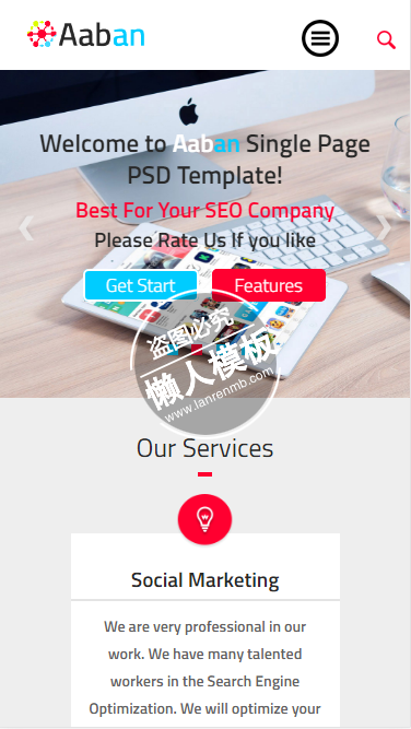 模板简介:该模板名称为【Aaban单页psd模板制作html5手机wap企业网站模板免费下载】,大小是,文档格式为.,推荐使用打开,作品中的图片,文字等数据均可修改,图片请在作品中选中图片替换即可,文字修改直接点击文字修改即可,您也可以新增或修改作品中的内容,该模板来自用户分享,如有侵权行为请联系网站客服处理。欢迎来懒人模板【企业】栏目查找您需要的精美模板。
