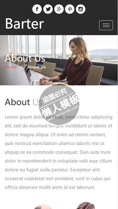 模板简介:该模板名称为【Barter网络企划部门html5公司企业手机wap网站模板免费下载】,大小是,文档格式为.,推荐使用打开,作品中的图片,文字等数据均可修改,图片请在作品中选中图片替换即可,文字修改直接点击文字修改即可,您也可以新增或修改作品中的内容,该模板来自用户分享,如有侵权行为请联系网站客服处理。欢迎来懒人模板【企业】栏目查找您需要的精美模板。