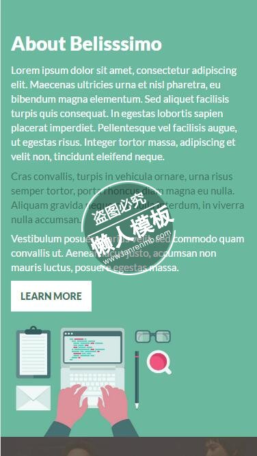 模板简介:该模板名称为【Belisssimo卡通及房屋设计html5公司企业手机网站模板免费下载】,大小是,文档格式为.,推荐使用打开,作品中的图片,文字等数据均可修改,图片请在作品中选中图片替换即可,文字修改直接点击文字修改即可,您也可以新增或修改作品中的内容,该模板来自用户分享,如有侵权行为请联系网站客服处理。欢迎来懒人模板【企业】栏目查找您需要的精美模板。