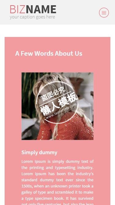 模板简介:该模板名称为【Free Bizname明星拍照html5公司企业手机wap网站模板免费下载】,大小是,文档格式为.,推荐使用打开,作品中的图片,文字等数据均可修改,图片请在作品中选中图片替换即可,文字修改直接点击文字修改即可,您也可以新增或修改作品中的内容,该模板来自用户分享,如有侵权行为请联系网站客服处理。欢迎来懒人模板【企业】栏目查找您需要的精美模板。