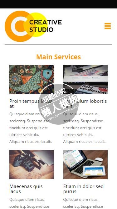 模板简介:该模板名称为【Creative Studio设计页面html5公司企业手机网站模板免费下载】,大小是,文档格式为.,推荐使用打开,作品中的图片,文字等数据均可修改,图片请在作品中选中图片替换即可,文字修改直接点击文字修改即可,您也可以新增或修改作品中的内容,该模板来自用户分享,如有侵权行为请联系网站客服处理。欢迎来懒人模板【企业】栏目查找您需要的精美模板。