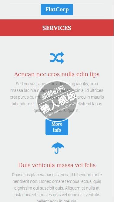 模板简介:该模板名称为【FlatCorp简洁蓝色图标html5公司企业手机wap网站模板免费下载】,大小是,文档格式为.,推荐使用打开,作品中的图片,文字等数据均可修改,图片请在作品中选中图片替换即可,文字修改直接点击文字修改即可,您也可以新增或修改作品中的内容,该模板来自用户分享,如有侵权行为请联系网站客服处理。欢迎来懒人模板【企业】栏目查找您需要的精美模板。