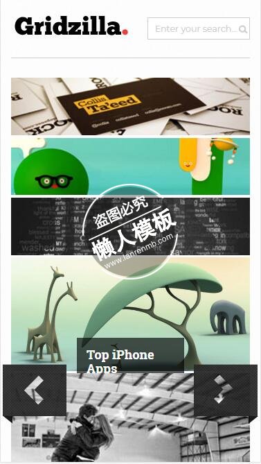 模板简介:该模板名称为【Gridzilla多图展示html5公司企业手机wap网站模板免费下载】,大小是,文档格式为.,推荐使用打开,作品中的图片,文字等数据均可修改,图片请在作品中选中图片替换即可,文字修改直接点击文字修改即可,您也可以新增或修改作品中的内容,该模板来自用户分享,如有侵权行为请联系网站客服处理。欢迎来懒人模板【企业】栏目查找您需要的精美模板。