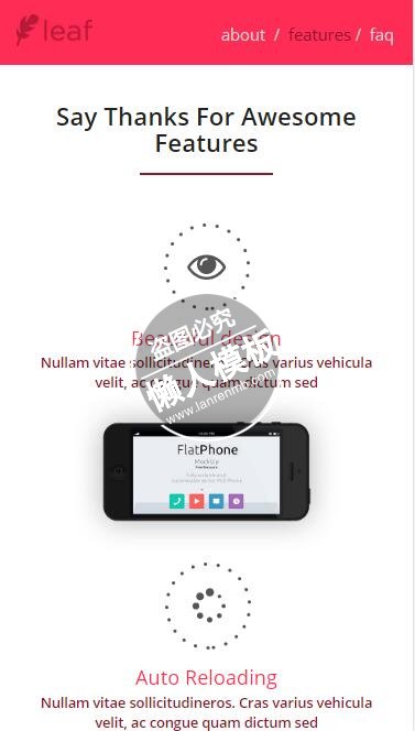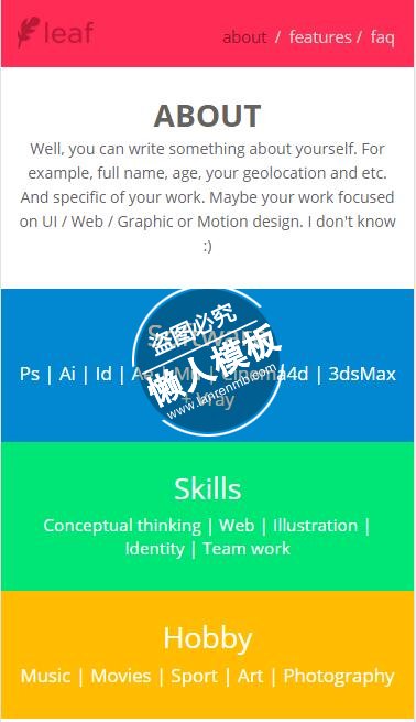 模板简介:该模板名称为【Leaf App红色背景登录页面html5公司企业手机网站模板免费下载】,大小是,文档格式为.,推荐使用打开,作品中的图片,文字等数据均可修改,图片请在作品中选中图片替换即可,文字修改直接点击文字修改即可,您也可以新增或修改作品中的内容,该模板来自用户分享,如有侵权行为请联系网站客服处理。欢迎来懒人模板【企业】栏目查找您需要的精美模板。